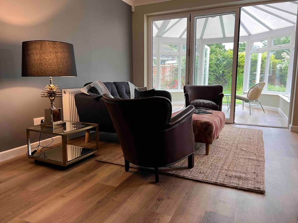 Our main living room looking through conservatory into the private garden